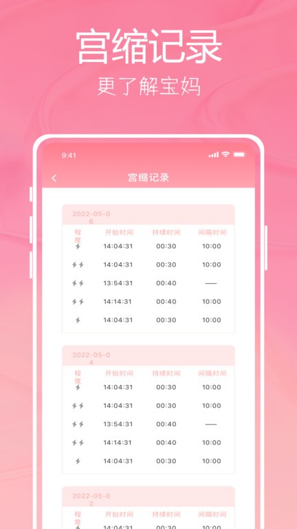 2、宫缩记录,在快要生产时能够精准记录宫缩情况更好的了解宫缩;