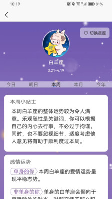 ④、智能切换,软件内的星座状态会自动更换,这样减少用户手动操作的繁琐。