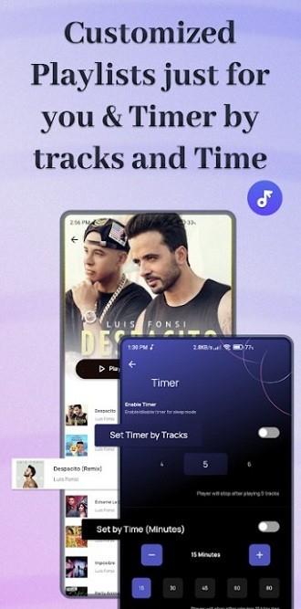 3、为了能够更安心的边听边睡觉,提供了定时停止音乐播放的功能。