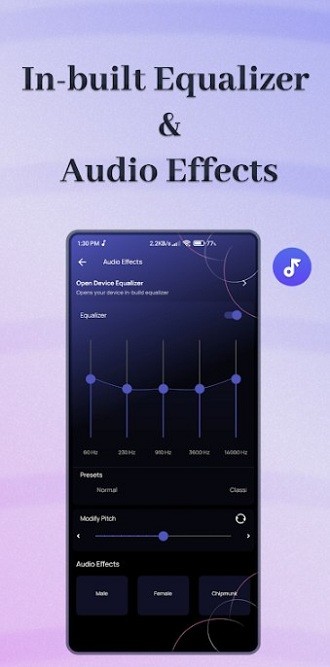 2、提供了多种音乐音质效果的使用,满足用户们的多种音乐的播放效果;
