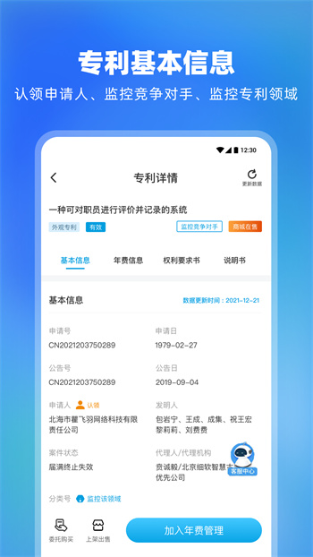 1、各种企业的专利,个人的专利,用户都可以查看到专利信息等;