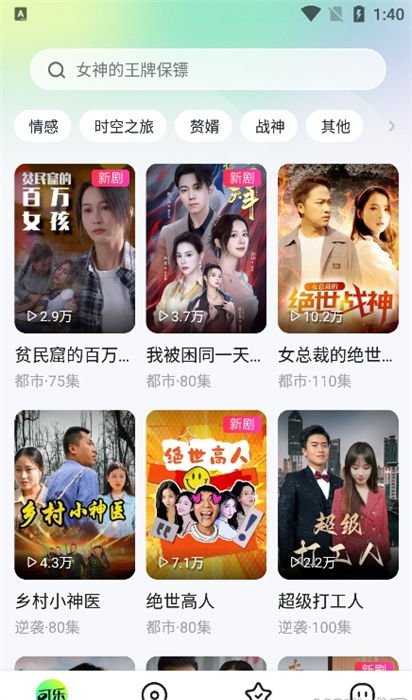 可乐短剧app是一款专门给大家呈现精品短剧的播放器,目前这里包含了多种短剧的题材,如都市、穿越、战争等等,全部都能让用户到线上尽情查找挑选,并且你在线每次的浏览记录都能存储下来,这样无论任何时间中断都能继续追剧,想尝试的小伙伴快来下载吧!