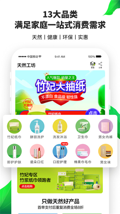 天然工坊app是一款线上购物的一款app,用户可以使用app购买到环保、天然的生活用品比如竹浆纸巾等各种环保的商品,主打的就是售卖环保健康的纸巾,使用app是用户可以购买到其它的环保商品,使用app时用户可以查看到各种商品的信息,用户使用app购买商品时,可以查看到商品的物流信息,在app中还有各种环保牙刷、牙膏、袜子、洗脸巾、毛巾还有各种洗漱用品,用户可以在app中购买到想要的商品,用户可以通过搜索查找需要的商品信息,app是一款专门售卖环保商品的一款app,app里面的商品都是绿色环保的商品,需要的用户快来下载购买商品吧。