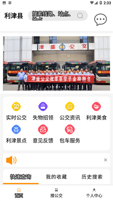 1、app上包含了各种功能比如查看实时公交车,失物招领查看利津的美食和景点等;