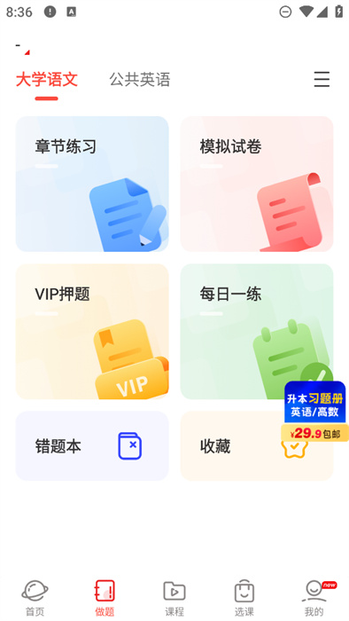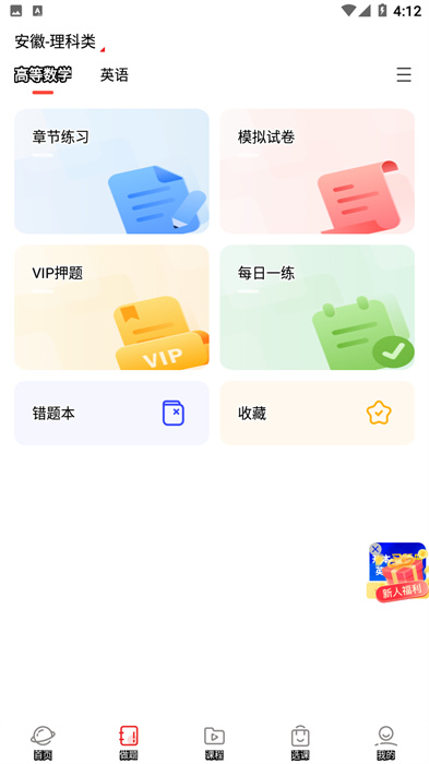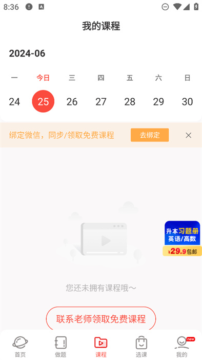 2、在做题中用户可以通过绑定微信领取免费的课程和练习题还有模拟试卷,还可以看错题;