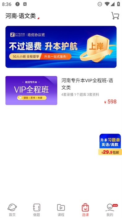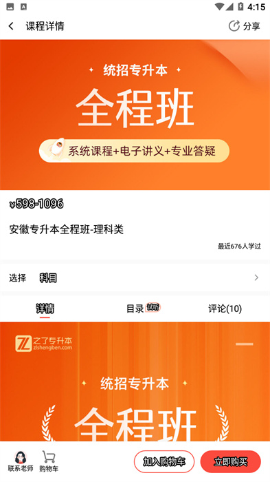4、用户可以通过自己的学科购买专升本全程班,里面会有老师为学生解答问题指导功课。