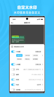 水印相机全能王app是一款在工作上免费非常有帮助的强大软件,随时都能适时记录自己的工作,通过时间地点的加入能让整个拍摄的时间更加准确,同时每次照片拍摄完成之后都能存储,同时还给大家准备了一些简单的汇报模版,直接导入即可看到完整效果,想尝试的小伙伴快来下载吧!