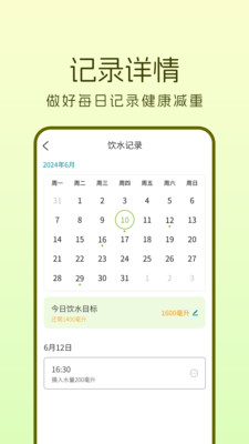 ③、喝水打卡,每天饮水也对减重非常的重要,需要提高水分的摄入;