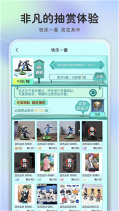 快乐一番是一款十分好用的购买商品资源内容的软件,这款软件里面拥有各大手办的品牌供用户们去进行选择购买,每一天都有不一样的新品可以去进行抽取,只需要十分简单的操作就可以完成自己想要购买的商品资源的内容。