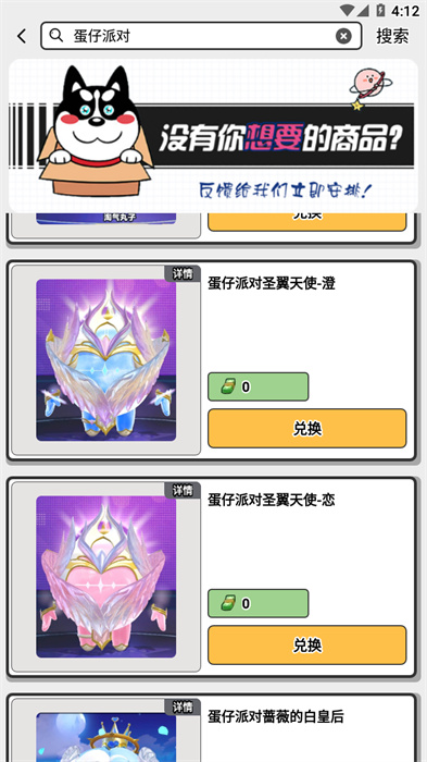 在app中用户可以通过搜索来查询需要兑换的游戏皮肤,也可以通过搜索角色名查找;