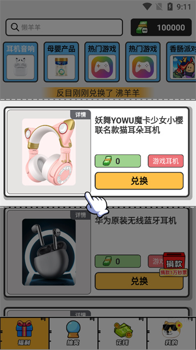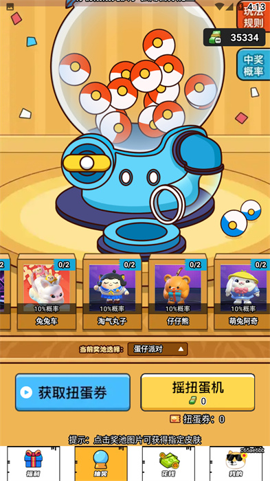 在抽奖功能中用户需要把自己的钱花完才能抽奖,每个皮肤被抽中的概率都是10%;