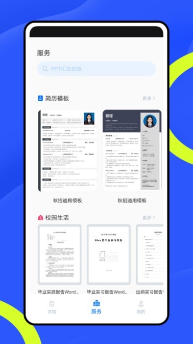 2、内置各种不同的文档、表格、PPT模板,快捷化一键通用非常方便;