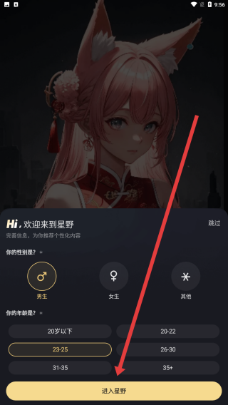 1、在确定好个人信息后,点击进入星野按钮进入app首页。