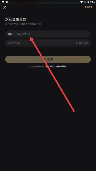 3、在登录页面中,按照要求在输入框中输入手机号,以便获取验证码完成登录。