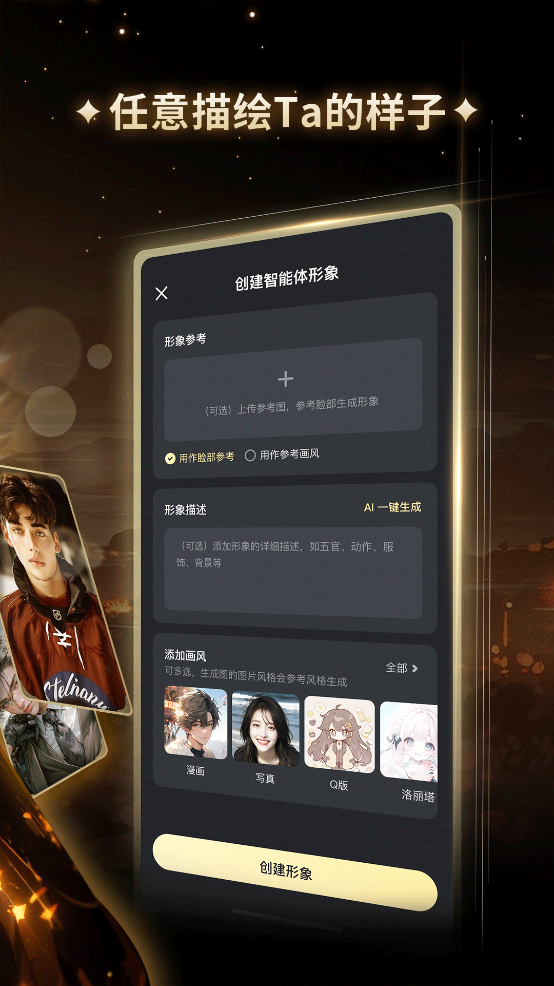 星野ai聊天一款能够虚拟创建社交互动为主的软件,在这里用户们能够自己打造一个专属于自己的虚拟对象进行互动,每天都可以与他们进行对话,随着对话越来越多虚拟角色也将会不断的学习,在智能回复对话上更加符合个人喜爱的真实互动人设,在模拟对话上更是一个非常强且独特的互动式的对话方式,满足各位用户们的互动对话需求。