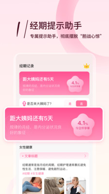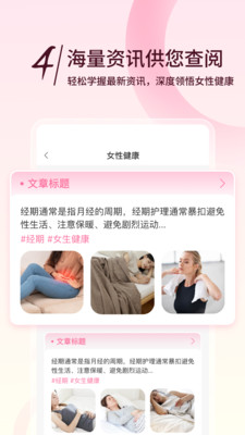 月月记姨妈助手软件是一款数据非常准确且更快捷预测信息的软件,不论你当前是任何状态都可以通过搜索关键词的方式来查看具体咨询文章,这样可以减少生活中的一些使用状态,不仅如此,你还能直接将身体的细节记录,方便软件有着更加精准的预测,同时还能不断的更新这里的健康资讯,可时刻关注自己身体上的变化,还能及时去医院进行检查来避免症状的严重性,日常有类似需要的小伙伴快来下载吧!