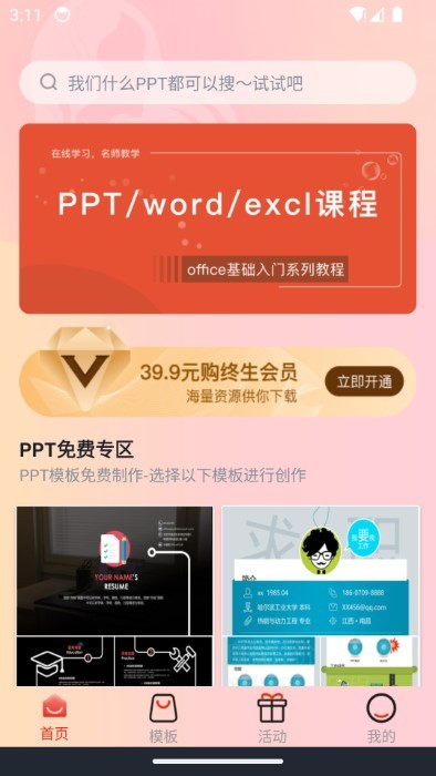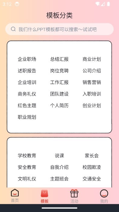 5、内置超多的在线模板随时下载,比如学习教学、办公汇报等等;
