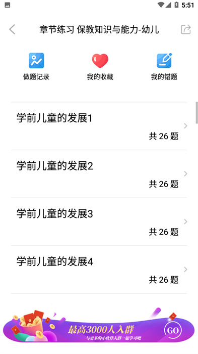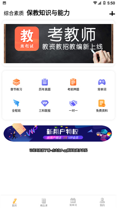 在app中有综合素质学习资料还有保教知识与能力学习资料,用户可以根据自己学习的内容选择需要学习的内容;