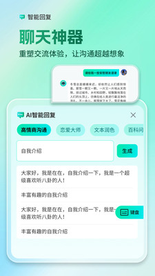 AI全能输入法软件是一款非常智能的输入法软件,这里不仅有常见的几个输入法,还有很多表情包以及智能回复功能,帮助更多小伙伴能掌握最新数据,并且软件适合在大部分的设备上运行,不会产生任何操作上的问题,如果你日常也需要类似的软件辅助打字快来尝试吧!