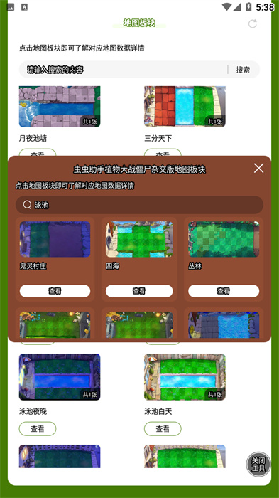 虫虫助手植物大战僵尸杂交版地图板块app是一款植物大战僵尸杂交版的地图介绍用户可以看到地图的照片还有地图的介绍,还有各种攻略,这款app主要就是植物大战僵尸杂交版的题图分享攻略,用户可以直接搜索的地图的名称,查看地图的攻略和注意事项,在app中还可以直接启动工具,在玩游戏时直接在游戏界面就可以直接点击开启工具,就可以直接在游戏界面搜索地图,查看地图的攻略和注意事项,在这款app中可以看到植物大战僵尸杂交版地图板块,让用户更了解地图,更快的通关,更快的攻略游戏关卡,有需要的话用户快来下载使用吧。