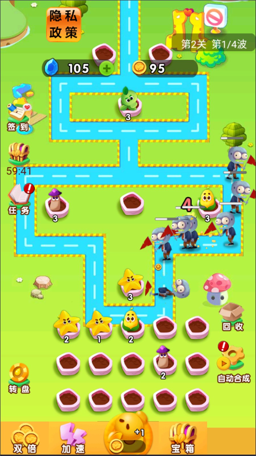 2、植物的摆放需要保障阳光的充足,通过不断增加阳光带来更多攻击;