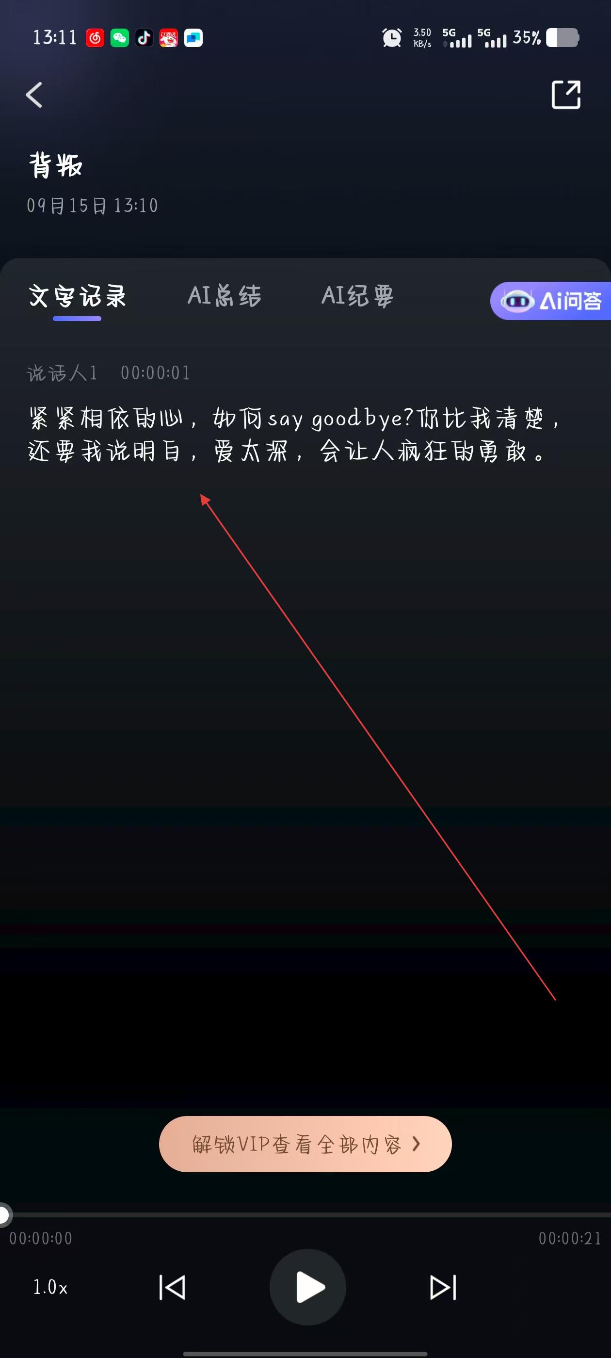 4、等待转写完成,即可进入转写结果页面,查看音频转换后的文字记录。