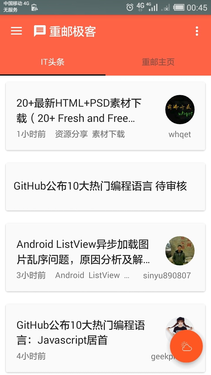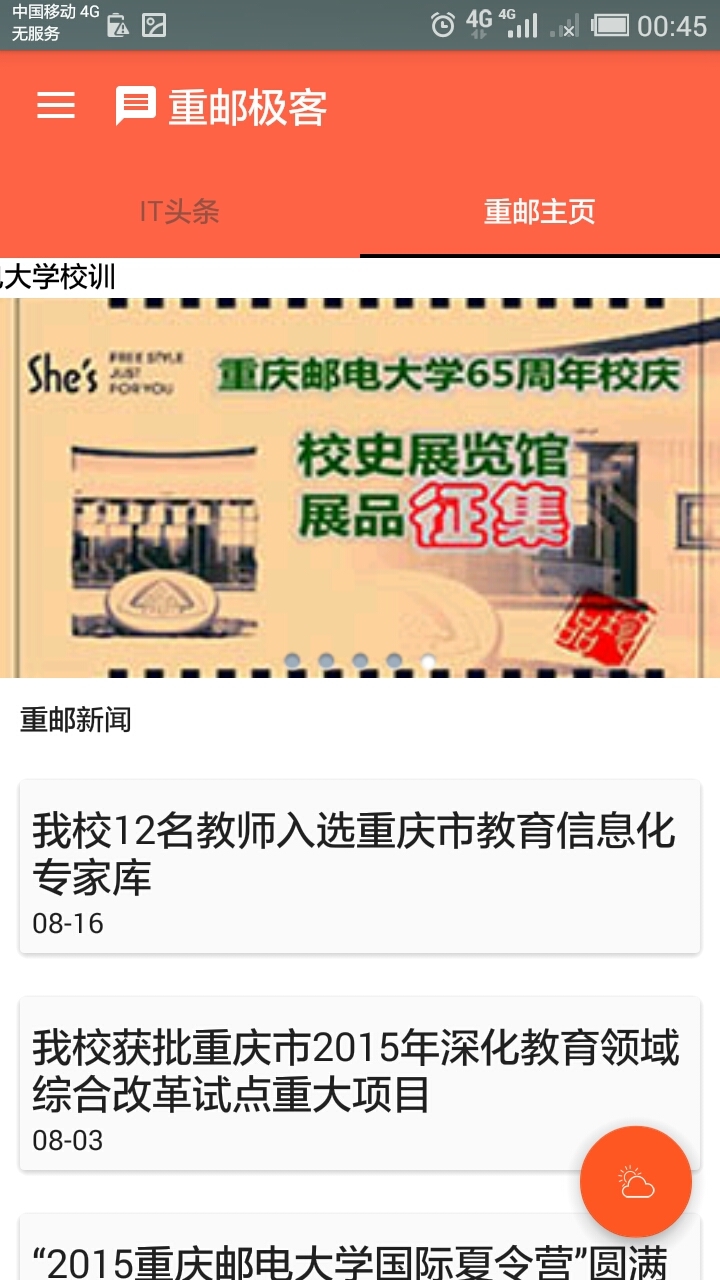 2、一款集IT知识、重邮动态、、自动定位天气 查询、一键截屏分享的material design风格学习应用;