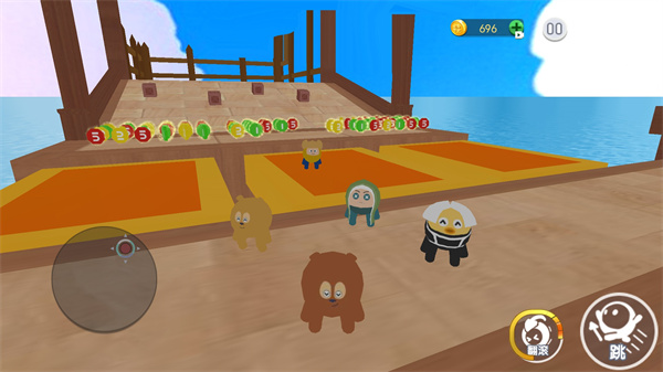 4、随着不断挑战难度也会增加,小心进行移动和翻滚避免掉到水中;