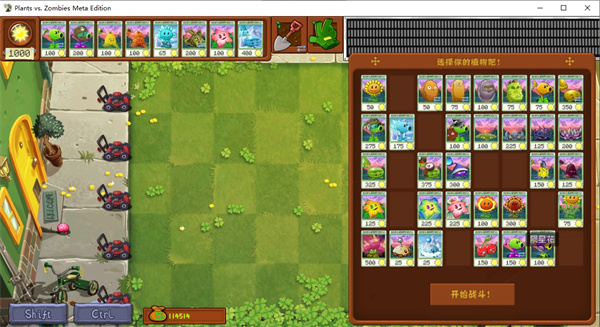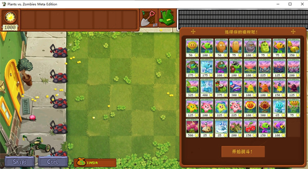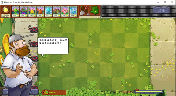 3、随后就可以放置你的植物,初始会有一千的阳光,但是并没什么用,因为游戏一开始难度就很高;
