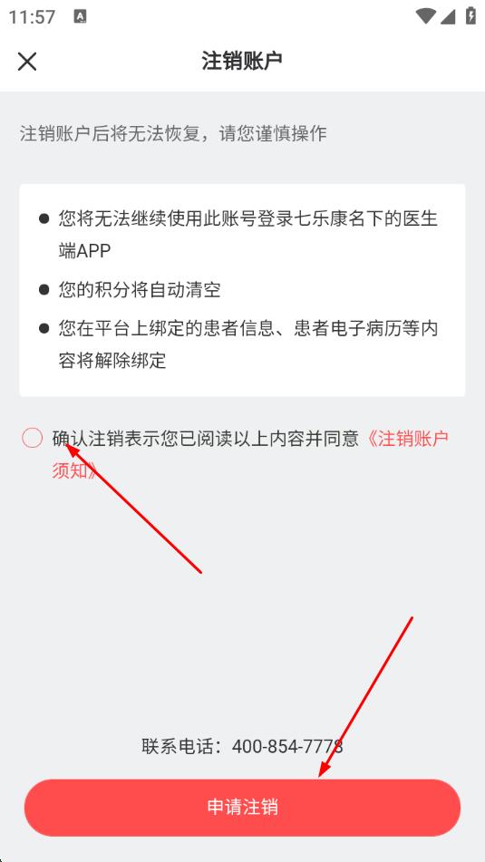 4、在注销账户页面,勾选确认注销表示您已阅读以上内容并同意《注销账户须知》,点击申请注销。