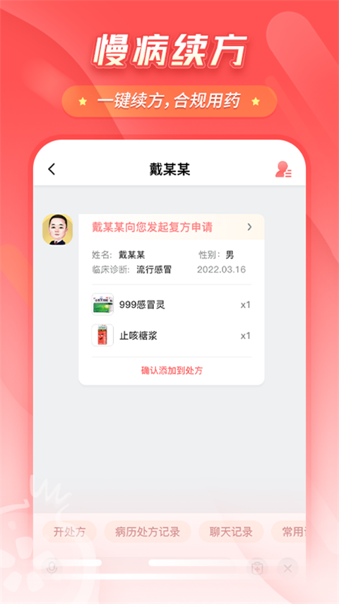 实现语音、文字和图片实时沟通,自定义在线时间、快捷回复、病情备注、用药助手等功能