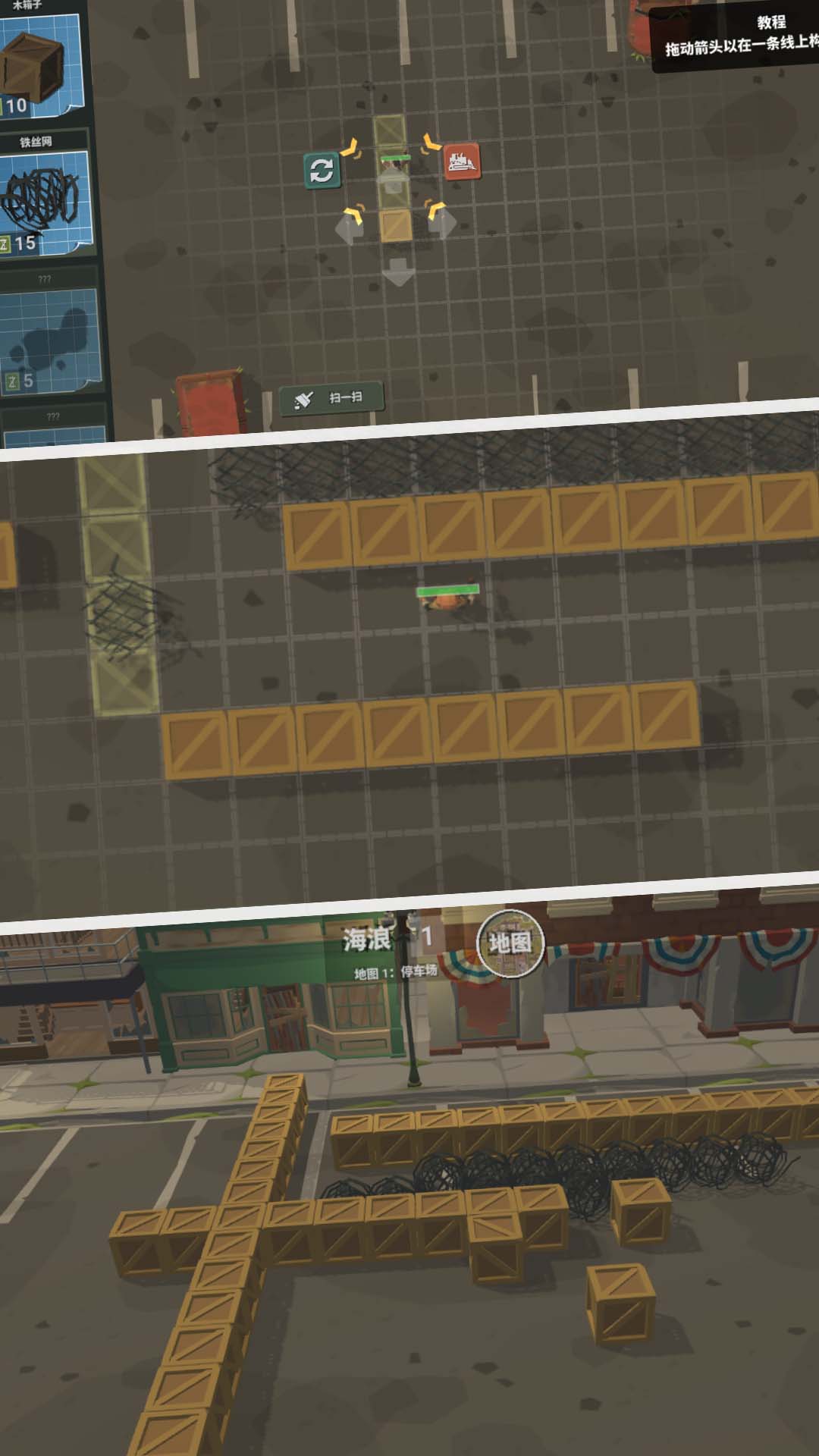 2、灵活的在场景中寻找躲避屋,避免被僵尸们发现并进行追击进行挑战;