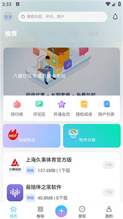 六趣社区是一款专门为了用户们下载软件资源内容打造出来的软件,这款软件拥有许许多多种类型的软件资源的内容,软件的界面设计十分的简洁而且操作简单明了,用户们能够轻轻松松的上手操作,欢迎有需要的用户们直接下载体验。