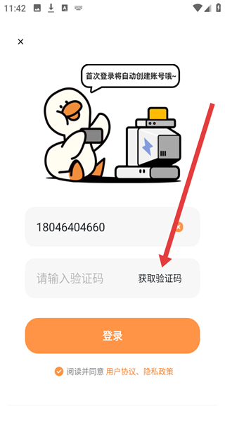3、登录页面输入手机号后,点击“获取验证码”。