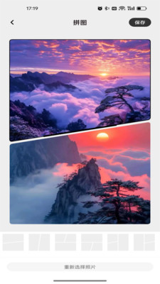 ①、拼图模版,软件内有很多现成的模版,导入照片就能看到拼图效果;