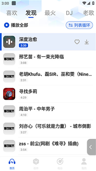 4、超级多的音乐资源内容的作品等着用户们去进行播放,操作也十分的简单化。