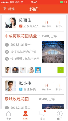 通过“约约房”App,经纪人可以随时随地地掌握客户购房进度,楼盘发布消息,服务更加快捷