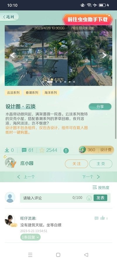 逆水寒手游庄园站是一款非常好用有关逆水寒手游中的各种辅助工具,相信一定有非常喜欢逆水寒的玩家,你们会在这里看到各种有关游戏中的各种活动和游玩方式等等,同时更重要的使能够查看个人的庄园信息,同时还能了解到其他大佬们制作的庄园效果,并且还能从中还能为各位带来设计图,利用这些设计图能够轻松的将自己的庄园打造成和他们一样的风格,也能自由的设定不同的庄园风格等等。