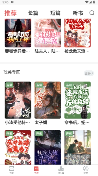 梦游小说软件是一款随时都能线上进行书本挑选的强大阅读器,这里的大部分书本都能到线上挑选,同时还按照不同的题材来进行整理,帮助更多小伙伴到软件内进行使用,不仅如此,如果你长时间到软件内进行阅读书本,软件能结合大家日常线上的喜好推荐更丰富的书本,这样一定能减少大家书荒的情况,如果你长时间阅读产生了一些视觉疲劳,完全能打开听书在线阅读,你可以适当放松一下自己的感受,想尝试的用户快来下载吧!