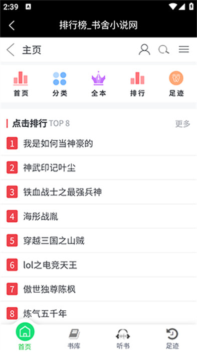 书舍小说app是一款可以进行小说资源内容阅读的应用,不会错过任何精彩的小说章节的内容,软件打开之后就会显示软件的首页,会为用户们带来所有功能的内容,用户们可以通过分类或者是搜索功能的内容快速的查找自己想要的小说资源的内容,听书的功能内容在软件下方的菜单栏里面有显示。