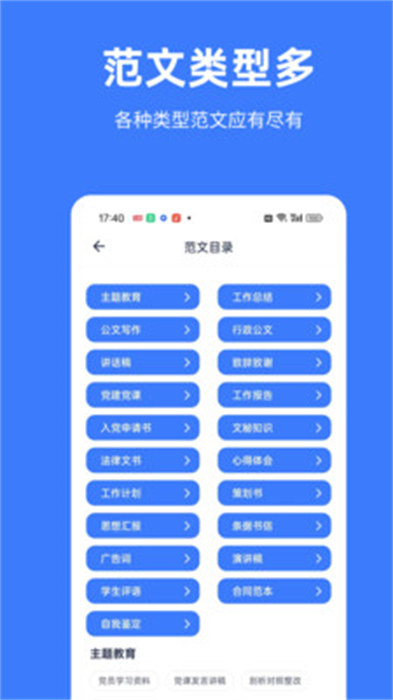 写稿帮手是一款专门为了用户们进行写作打造出来的软件,这款软件拥有十分丰富的写作模版可以供用户们去进行选择,让用户们的创作效率可以更加的高效,还有许许多多精心挑选出来的范文为用户们带来了更多的写作创作的灵感。