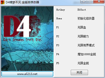 D4暗梦不灭全版本五项修改器是由游侠网专为游戏《D4:暗梦不灭》打造的辅助工具。软件是纯中文界面,更方便玩家使用,提供无限耐力、无限血、无限视界模式、无限金钱等功能,并支持全版本的《D4:暗梦不灭全》,帮助玩家轻松通关游戏。赶快下载体验吧!