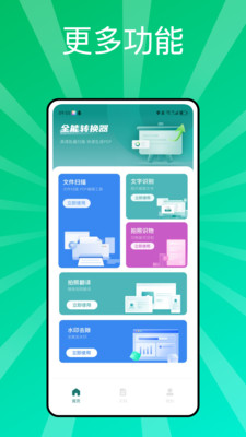 全能转换器app是一款操作简单的优质常用工具箱,不论是翻译还是扫描文件,都能直接通过相机来进行处理,方便大家快速了解到需要的内容,并且这里还能看到很多不同的数据变化,并根据扫描的情况展示出所有的细节,满足每个小伙伴的使用需求,不仅如此,目前你在这里的所有操作记录都能存储下来,即使更换设备也能浏览的更全面,如果你觉得这款工具十分的强大,完全能分享给好友一起使用。
