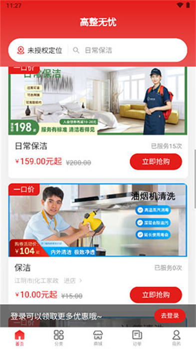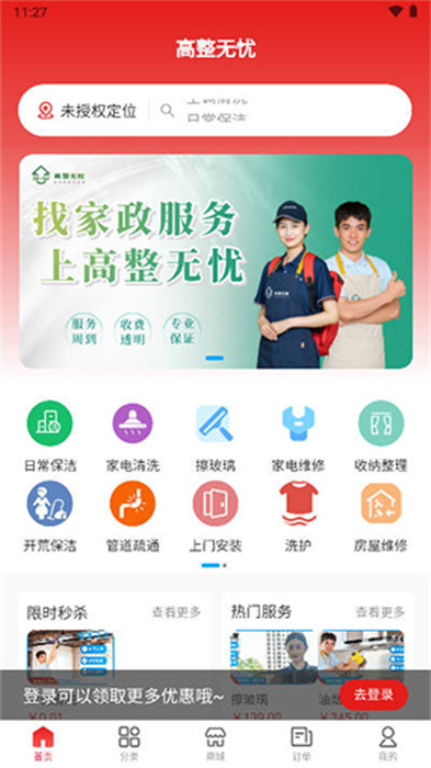 高整无忧是一款十分好用的使用家政服务内容的软件,这款软件里面拥有许许多多种家政服务的内容,通过十分精准的服务分类可以让用户们更加快速的去进行下单的操作,通过服务分类的匹配可以更加精准的匹配到服务的人员。