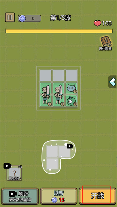 3、放置好屏幕之中已有的魔物之后,玩家将需要进行全新魔物的获取,只需要点击刷新即可获取;