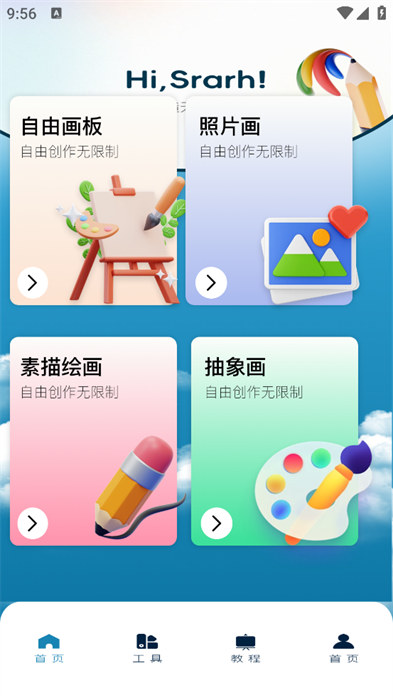 软天空是一款十分好用的进行内容绘画创作的软件,这款软件可以让用户们自由的在软件上面去创作,用户们可以创作出各种各样的绘画内容,还有色卡供用户们去进行颜色的比较和选择,会更加精准的完成自己的绘画创作的过程,绘画的分类也十分的详细清晰,能够选择自己所需要的分类进行创作,能够发现到更多的绘画教程去进行学习创作,学习到更多零基础绘画的操作,全部都是一些非常实用的功能内容供用户们去进行使用,有需要的用户们可以下载体验。