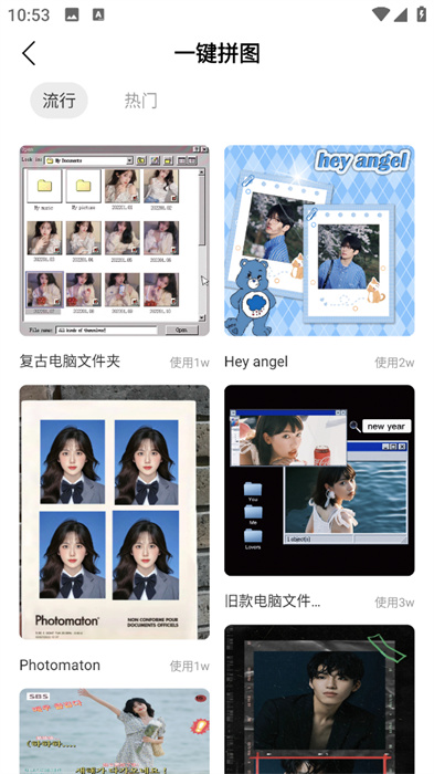 2、点击【拼图】,能够在这里看到目前时尚的一些模版,无需你手动调整就能看到完整的效果;