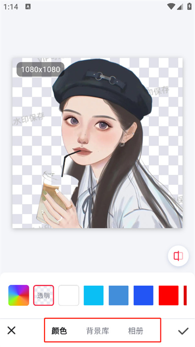 4、随后,大家找到下方的【背景】按钮,能够弹出一些选项,你可以挑选需要更换的背景,并点击右下方的【√】按钮;