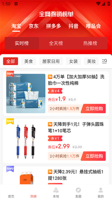 2、实时热销的榜单为用户们推送,查看热销的商品资源的内容;