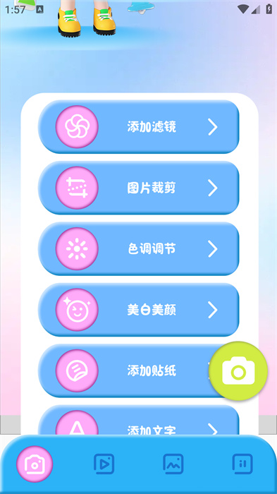 1、首先,你在打开软件之后,能在首页看到很多图片功能,如滤镜、贴纸等,这些都免费展示给大家;